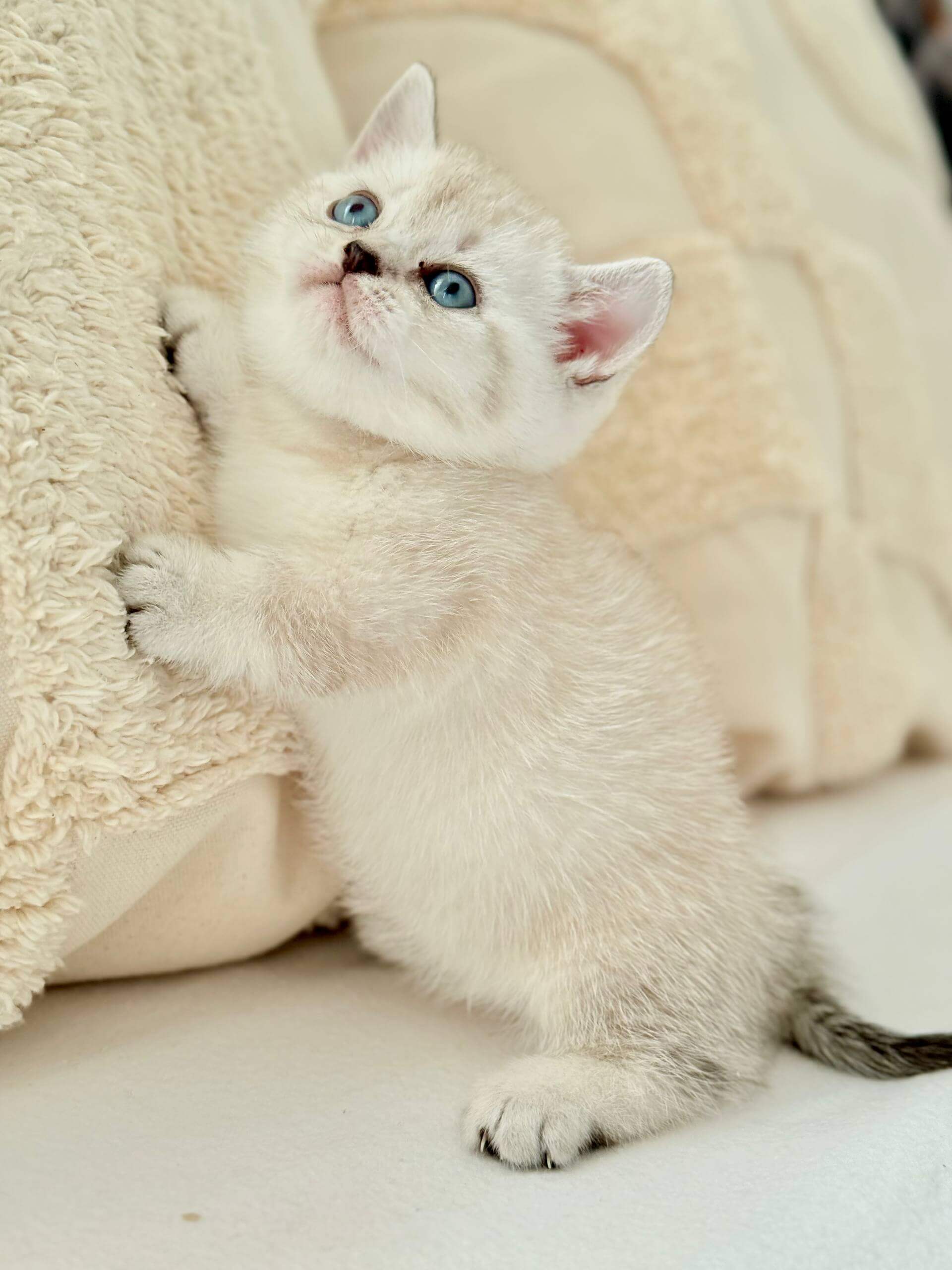 Buy Munchkin cat UK, Bloom’s personality is pure poetry playful but oh-so-sweet, she loves a cozy cuddle as much as a chase after her favorite feather toy. With her sleek coat dusted in lynx point markings and her elegant stature, she lights up any room with both beauty and curiosity.