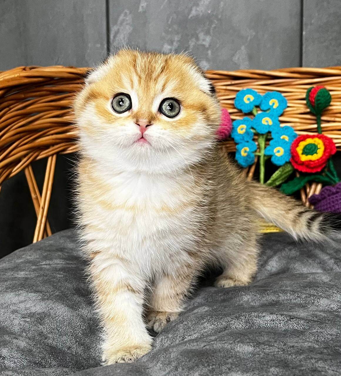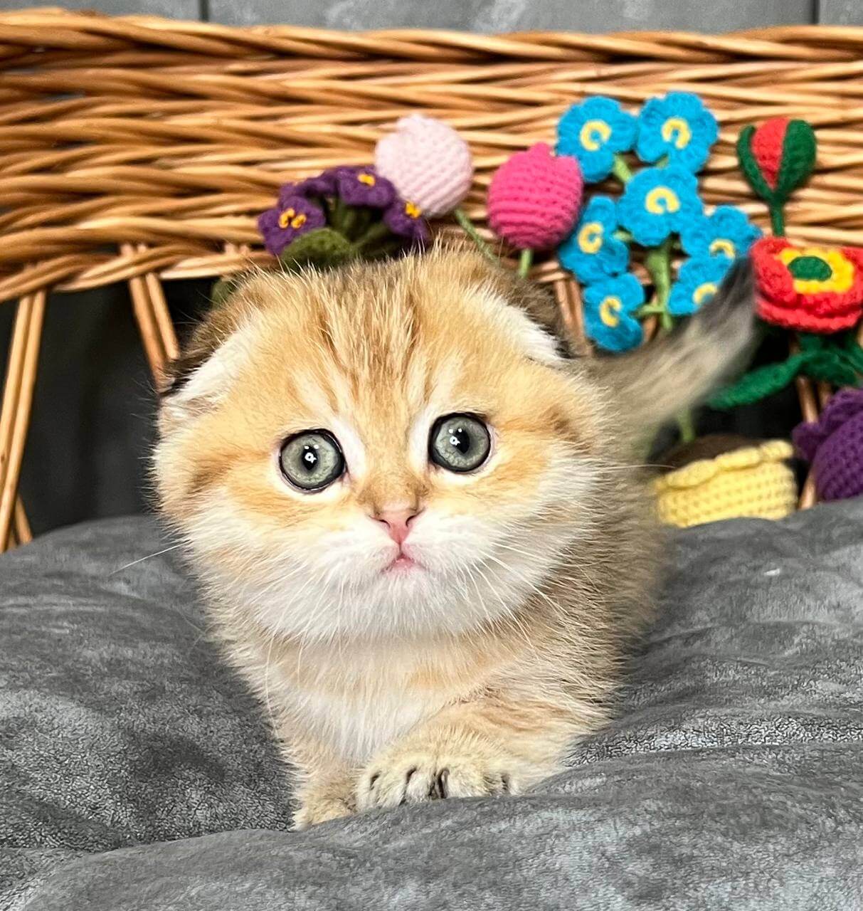 Meet Iris, a heart stealer wrapped in velvet scottish fold kitten for sale! From the moment you gaze into scottish fold cats for sale sparkling emerald green eyes, you’ll feel the gentle warmth of a lifelong friend ready to fill your home with soft purrs and loving cuddles.